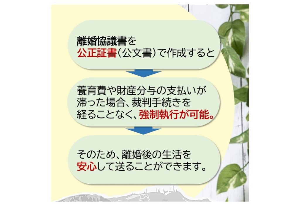 また、金銭の支払いを目的とする契約書には、強制執行を調停や審判といった家庭裁判所での手続きを経なくてもおこなうことができるようになります。