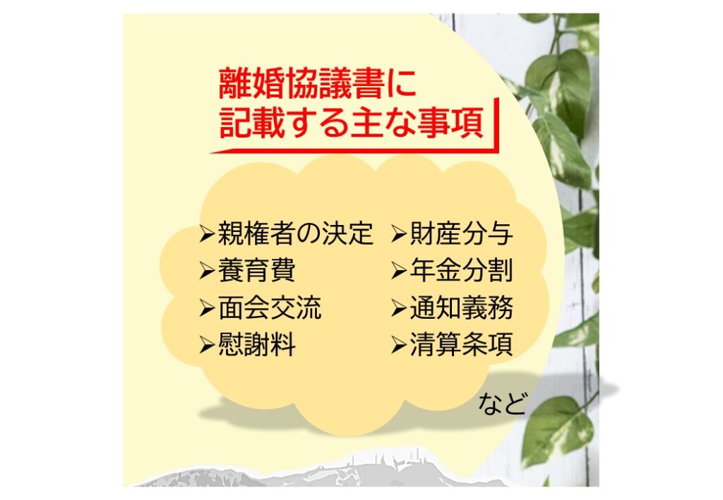 離婚をする際は、親権や養育費、財産分与などの取り決めを話し合い、それを書面に残す「離婚協議書」を作成することが大切です。